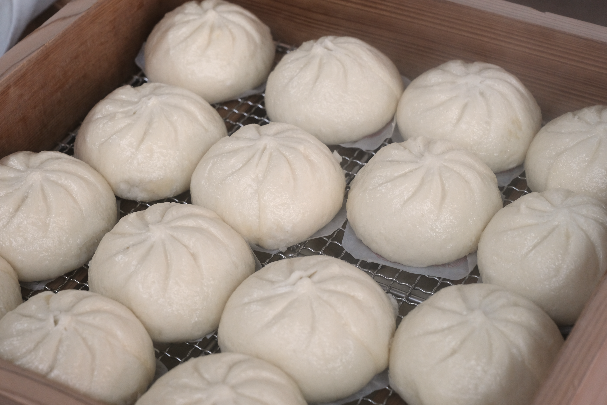 店内では、大きな木製の蒸し器から真っ白な湯気が立ち上ります。